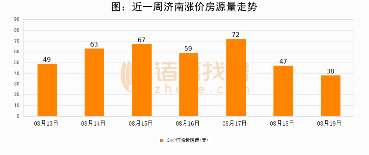 根据诸葛找房数据显示,济南24小时涨价房源量为38套,较08月18日减少9套,环比下降19.1%。与此同时,涨价房源占比小幅回落,对于购房者来说是一个入市窗口期,购房者可抓住时机入市。