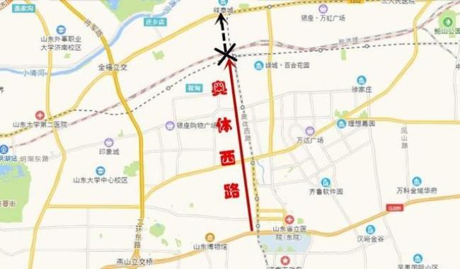 根据《济南市中心城道路系统规划》,奥体西路南侧可沿龙鼎大道与二环南路快速路相接,北侧通过华山立交与北绕城高速、规划济乐高速衔接。自南向北连接龙奥政务中心、国际金融城、盛福片区、王舍人片区、农干院片区、华山片区等。