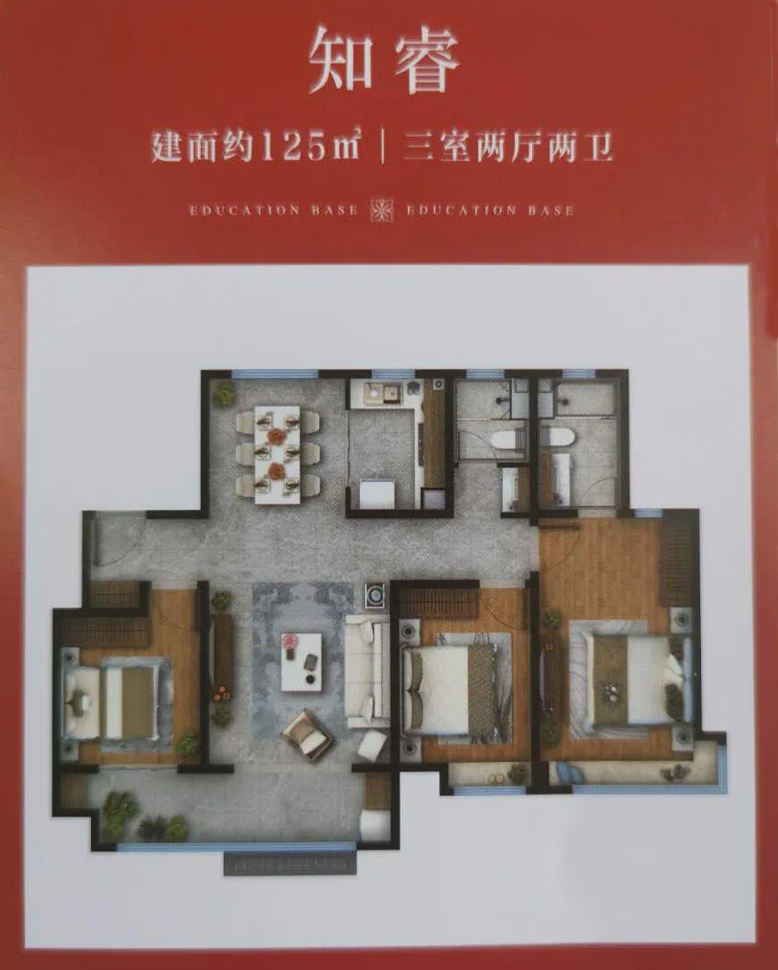 智睿 125㎡三室两厅两卫户型,精装