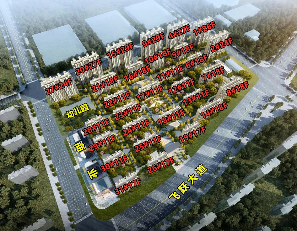 剩余16栋楼为精装交房,具体为10-13号、17-18号、22-25号、28-30号共13栋楼为11层洋房,19号、26号、31号为17层小高层。小区为封闭式小区,内部没有底商,存在住宅式公寓,购房时注意。