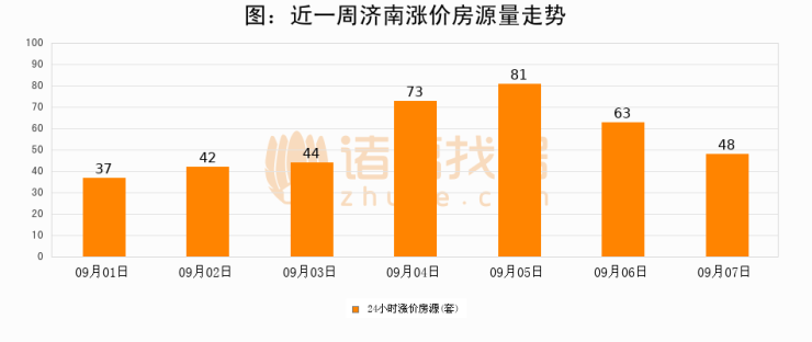 根据诸葛找房数据显示,济南24小时涨价房源量为48套,较09月06日减少15套,环比下降23.8%。与此同时,涨价房源占比小幅回落,对于购房者来说是一个入市窗口期,购房者可抓住时机入市。
