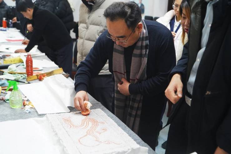 活动现场设有书画创作、非遗拓印、琴萧协奏等体验环节,嘉宾们踊跃参与,在墨香中沉浸式感受传统文化魅力。书画家们泼墨挥毫,纷纷为园区企业代表赠送了定制的书画作品;为推动文化赋能与产业生态持续融合,园区还聘请多位艺术名家担任“园区文化发展顾问”。