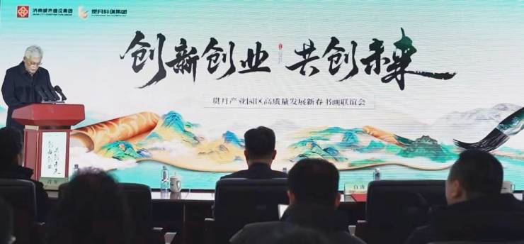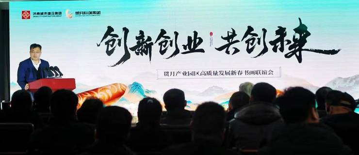 济南城市建设集团党委委员、副总经理侯涛在致辞中指出:“产业是城市发展的引擎,园区是产业集聚的热土。”高质量发展的内涵远不止于空间营造,更离不开创新生态、服务温度与文化滋养。他认为,本次活动正是以此为目标的一次创意探索——不仅以书画艺术为园区添墨增雅,更以文化为纽带,构建起政、企、艺、园多方深度对话、情感共鸣的生态圈。他表示,建设集团将作为坚实后盾,全力支持贯月科创集团建设成为国内一流的产业投资商与综合服务商。