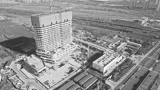 12月11日,山东省肿瘤医院质子临床研究中心项目综合楼主体结构封顶。  记者 杜亚慧 摄