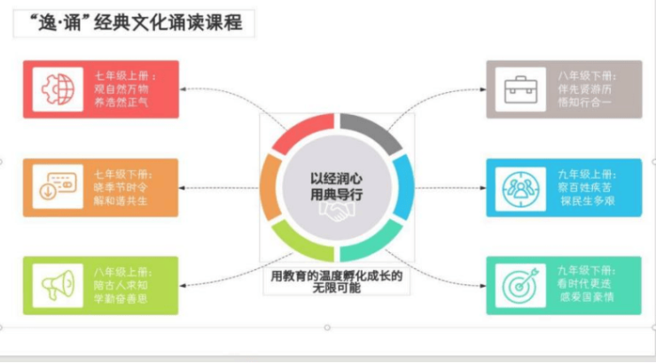 东城逸家中学着力构建“12345”经典诵读体系,围绕“让文学之花绽放东城校园”的目标,营造人人诵读的环境;实施课程开发和效果评价两个工程,保障诵读扎实有效;做到经典诵读与课程、德育、传统节日三个结合,促进文学水平全面提高;搭建悦读阅美读书节、东城学子讲坛、“朗读者”社团、“我们的节日”系列活动四个平台,提供师生展示舞台;开展红色演讲、国庆征文、图书漂流、同读一本书、寻找泉城最美书店五大活动,打造文学校园特色品牌。经典诵读已经成为学校文化血脉的重要组成部分,学生通过诵读中华经典美文,得到优秀传统文化的滋养,砥砺品行、健全人格。