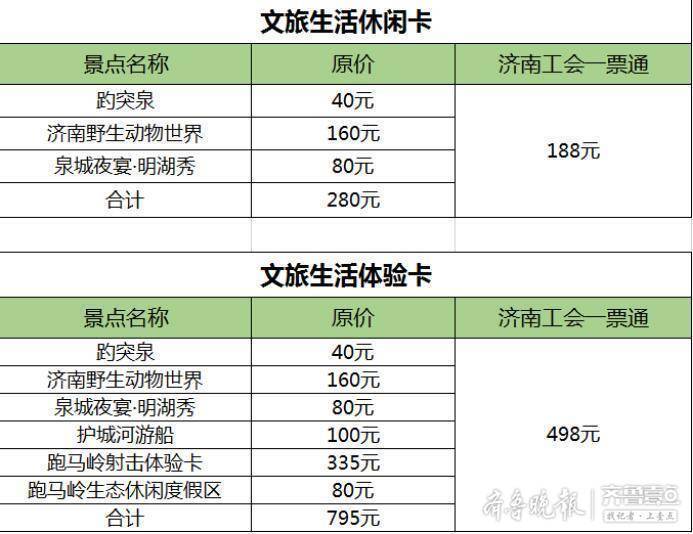 4月23日,济南市委市政府召开新闻发布会。记者获悉,济南文旅集团联合济南市总工会推出“济南工会一票通”产品,实现一次购票多景区游览。按照产品内容,分为文旅生活休闲卡和文旅生活体验卡,价格也分别为188元和498元。
