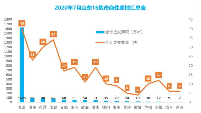 7月山东各地市土地成交量分布不均,土地成交共计255宗,较上月小幅上涨,成交面积达2288万㎡,相比往年同期有所增加,青岛成为土地成交大户,以40宗的成交数量,1625万㎡的成交面积双双位居榜首。东营土地供应量严重偏少,住宅用地的供应量更是少之又少。
