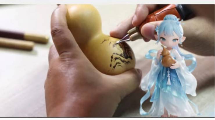 基于前期扎实的调研成果,实践队精心设计并制作了东昌葫芦主题IP形象,该形象融合了葫芦的经典造型与地方文化特色,生动展现了非遗的灵动魅力。实践队以此IP为核心,制作了东昌葫芦非遗介绍视频,通过生动的画面与通俗的讲解,详细介绍了葫芦雕刻的技艺精髓与文化内涵,借助短视频平台广泛传播,有效扩大了非遗文化的受众范围。