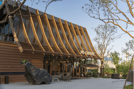 沿街商家的屋檐,或如飞檐昂扬,或如平檐内敛;街角处的自营咖啡店,以坡屋顶的形态与悬山泉涌上下映衬,形成独特的艺术地标;再往前,则是约600余平的坡屋顶,更显震撼。这些极具艺术气息的细节设计,在归家途中形成了一道唯美的天际线,抚慰着从喧嚣中归来的居者。