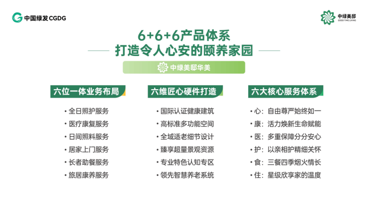 谋民生福祉,展央企担当。中国绿发立足于大健康产业发展格局,紧跟康养新需求,全面打造健康养老服务体系建设,有序推进全国康养项目落位。此次中绿美邸济南华美颐养中心的落位运营,将进一步完善中国绿发济南领秀城的康养配套功能,实现社区居住环境友好、康养服务便利友好、社区就医便利友好、社区老年精神生活友好,不断满足老年人对健康美好生活的新需求,打造让人民满意的“一生之城”,为推动养老服务高质量发展贡献力量。