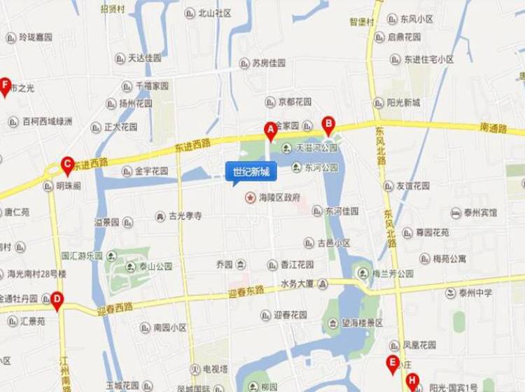 世纪新城项目位于泰州市中心位置,区政府西侧(财富广场正东),一期工程以中、小面积住宅为主,由泰州金色广场房地产开发有限公司开发,占地面积46600平方米,建筑面积180000平方米,容积率为3.5,绿化率为30% 。毗邻金鹰,乐天玛特,苏宁,滨河 广场,会宾楼, 动感 地带健身会所、中行、KFC,横店影城。