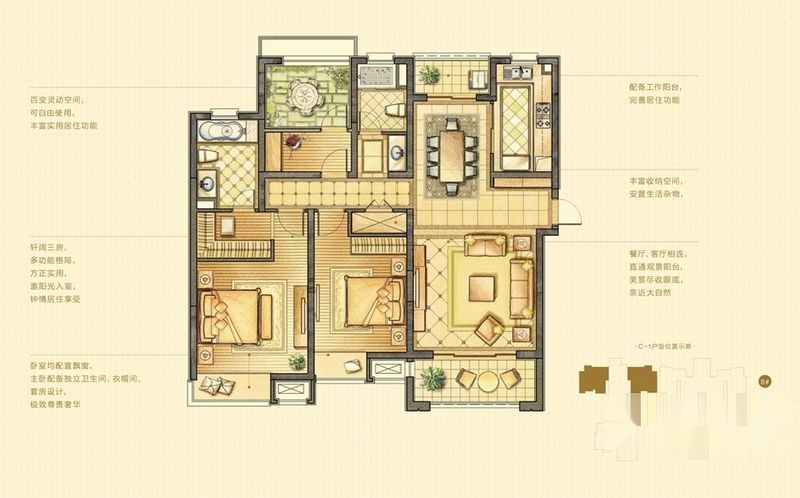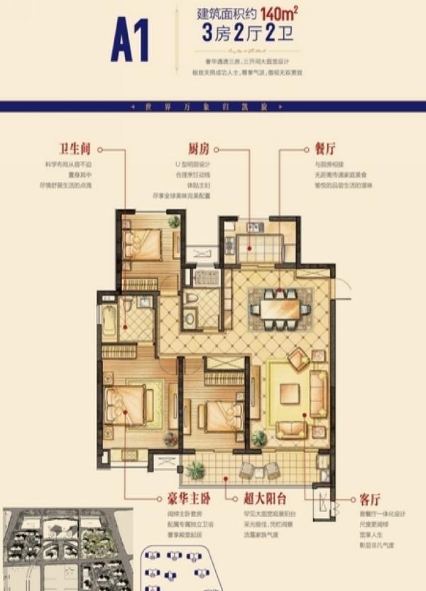 3室2厅2卫-A1约140㎡3房两厅两卫