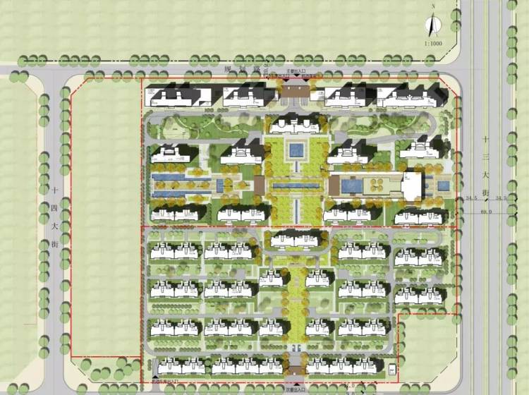 项目一期整个地块非常方正,地势呈北高南低的最佳风水态势,从古到今,讲究天圆地方、中轴对称的建造理念和布局,欧洲的凡尔赛宫、中国的紫禁城等皇家建筑都是遵循这样的规制。我们社区主入口“府门”分别于南北两端,连接南北府门中轴,让整个小区更具庄重感和仪式感。建筑由南向北依次排布:洋房、小高层、高层,这样的布局将最大化的保证每一户的通风和采光,5栋至12栋楼间距为112米,相当于7架歼十战机的长度,是目前开封市场楼间距最宽的项目之一,给您带来的生活改变是更多采光、更具私密性、更多景观资源。
