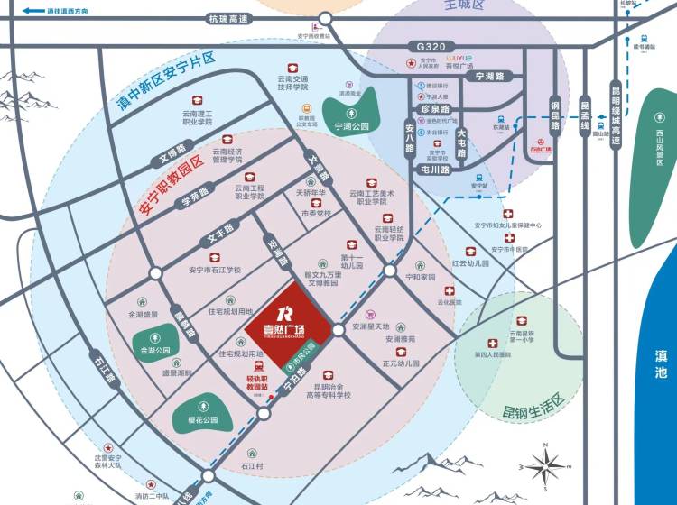 壹然广场(安宁)文旅商业综合体位于安宁大学城核心地段,东接安澜路,南临宁泊路,紧邻昆明冶金高等职业专科学校,北倚安宁市石江学校,项目总站地30亩,总建面约为8.3万平方米,整体规划中注入现代立体风情商业街区和产权式轻奢酒店理念,构建商业及轻奢酒店新模式。