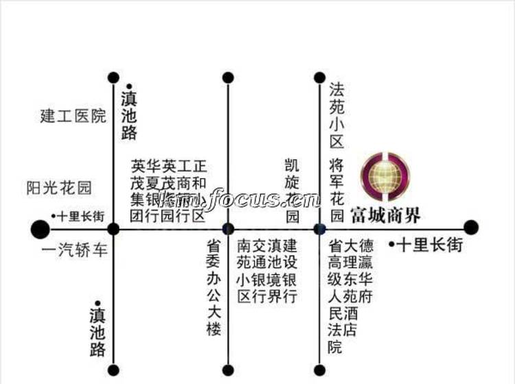 富城商界地处十里长街,周边名盘林立,法苑小区、湖畔之梦、地中海、香槟小镇、玫瑰湾......居住着超过40万的高消费人群,占据着昆明致富阶层较大的聚宝之地。交能便利,拥有省高院、省政协、省委、省公安厅、省人大、省检查院、省工商局......众多行政机关驻扎。这两点得天独厚的条件使富城商界成为南市区的财富中轴。