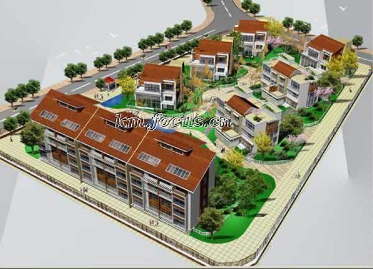 五房七里香位于滇池路西侧5 号及附5号道路东侧转角处。规划用地 6383.19 ㎡。拟建为独立、双联、堆叠式小住宅。