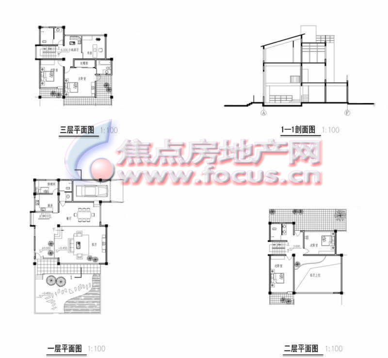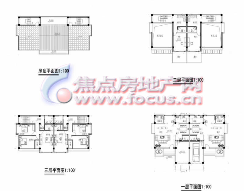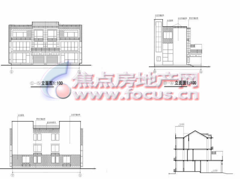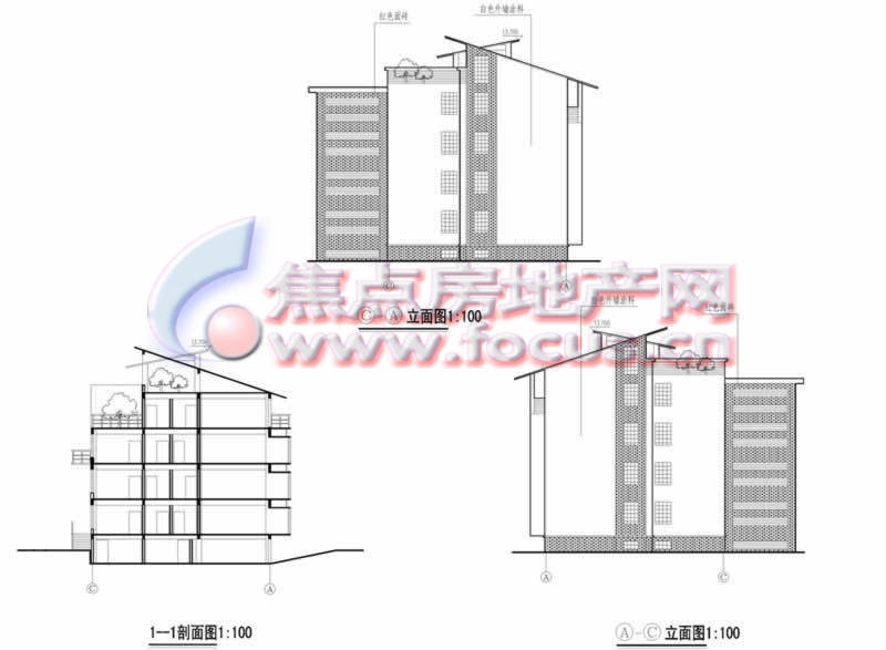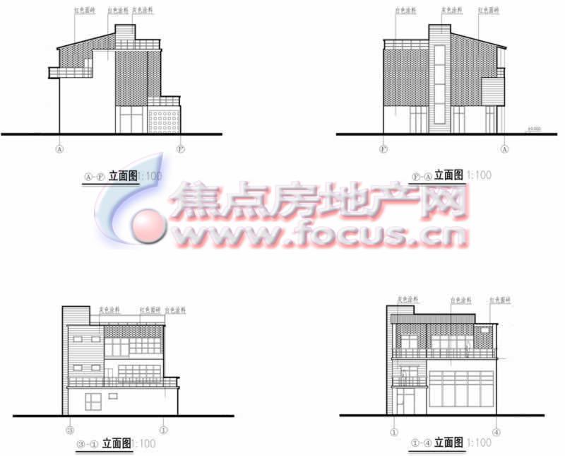 五房七里香的户型有A 型(双联)、 B 型(独立)、 C 型(堆叠)。 A 型及 B 型每户配有独立车库, C 型共 12 户于底层 2.2 米空间内配置分户式车库。 A 型及 B 型均为 3 层建筑, C 型为 2.2 米设备层 +4 个建筑标准层建筑。建筑风格均采用坡顶与平顶相结合、融入现代的立面窗、栏杆、阳台等造型手法,使用面砖及涂料饰面。力求营造一种清新活泼但不失典雅的现代建筑艺术气氛。