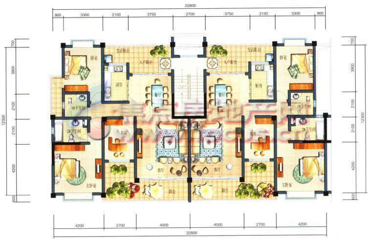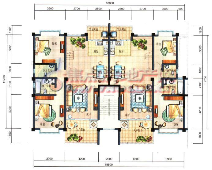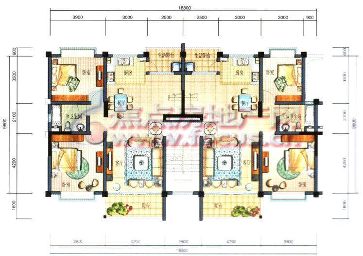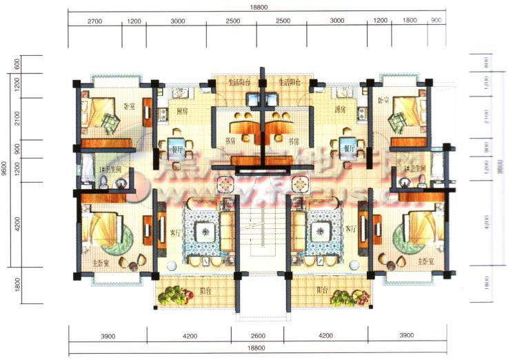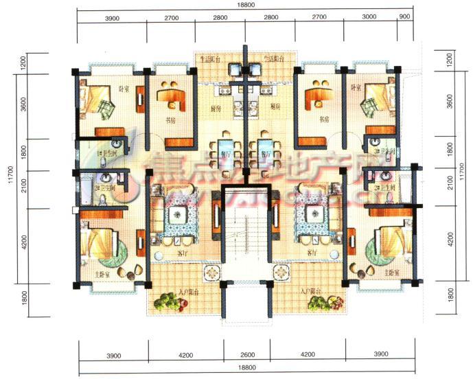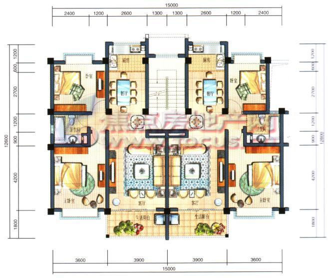 4室2厅4卫-上林宽境2 4室2厅1厨4卫3阳台1露台1起居室C3 C4户型下层