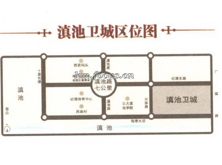 滇池卫城,位于滇池北岸,昆明滇池国家旅游度假区,兴体路与红塔东路交汇口。比邻海埂国家体育训练基地、红塔体育中心、云南民族村、民族博物馆、云南大学滇池学院,坐拥滇池西山,位于一湖四片”新昆明战略的核心发展区域。