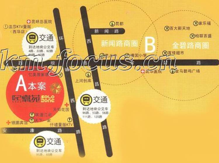幼儿园:中山幼儿园、童心幼儿园 中小学:篆塘小学、昆明第一中学 大学:昆明医学院 商场:沃尔玛超市 医院:云南医科大学第一附属医院、云南结石病医院 银行:工商银行 建设银行 其他:弥勒寺公园 小区内部配套:家政中心;洗衣房,棋牌室;超市;