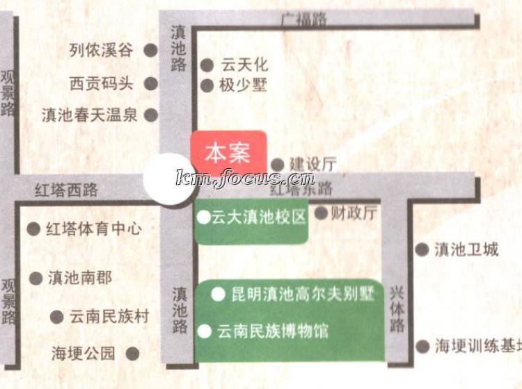 165路:云南民族村站,滇池卫城小区(红塔东路)站,滇池学院(红塔东路)站,滇池学院(滇池路)站