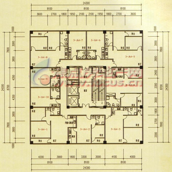 0室-中央金座1栋A、B、C座五至十一层办公平面