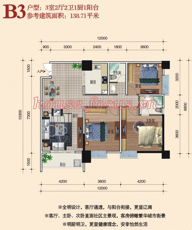 3室2厅1卫-伊皇晶座3室2厅1卫建筑面积约138.71㎡B3