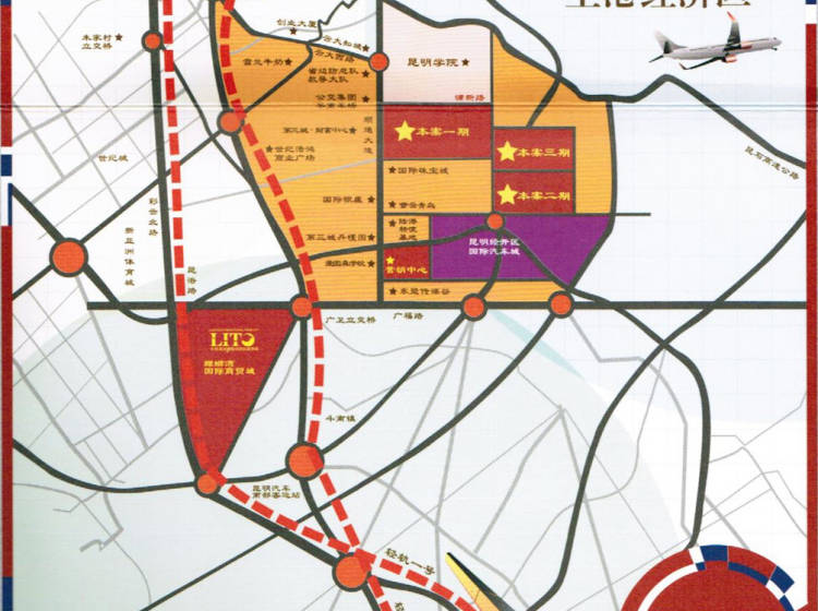 由二环快速进入汕昆高速,朝石虎关立交/石林/玉溪/机场高速方向,从昆明出口加工区/骏信国际汽配产业园出口离开进入鸣泉村立交,然后进入云大西路,朝顺通大路进入浦新路即到项目。