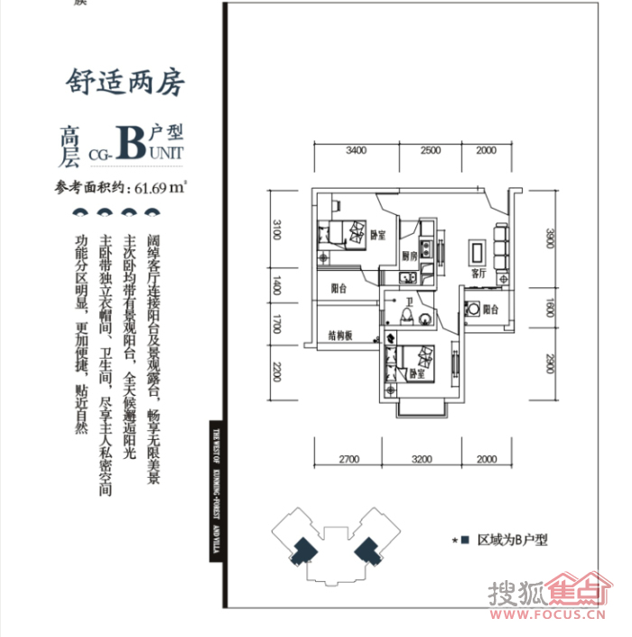 22万/套 建面61.69m²