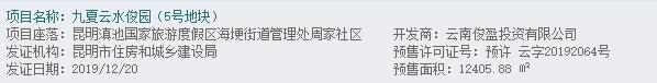 - 预许 昆字2018151号 详情发证时间 2018-09-19绑定楼栋九夏云水俊园(1#地块)Ⅰ