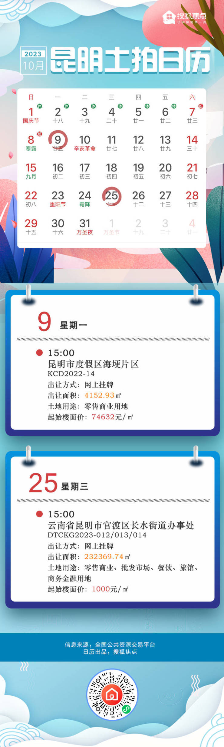 10月昆明主城五区及周边区县共供地4宗,均为商业用地,总面积约354.78亩。