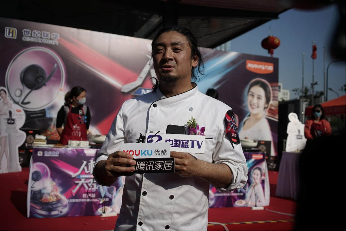 九阳炒菜机器人产品经理尹燕杰接受媒体采访
