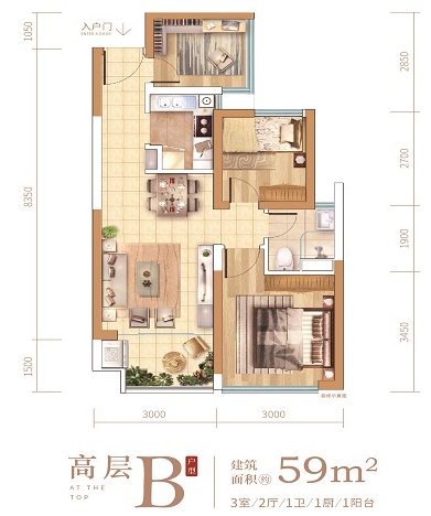 昆明提到对住宅面积的优质追求,不得不说天誉这家开发商,3室2厅1卫的户型最小竟然能做到59㎡,甚至每个房间都带有窗子,客厅还带有景观阳台,不得不说是把空间利用做到优质。