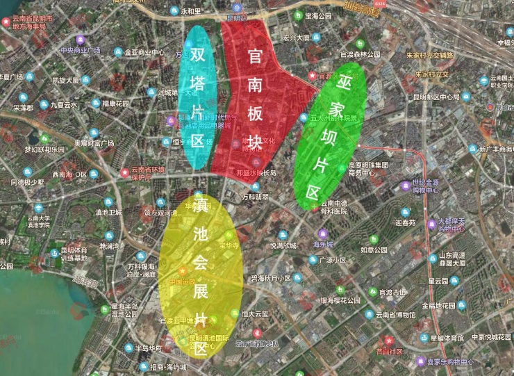 就是被西山双塔片区、巫家坝片区和滇池会展片区“黄金三角”包围的区域,从位置看,价值你可以品,细品!