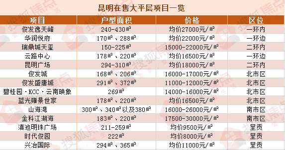 然而,从2017年开始,昆明大平层住宅如雨后春笋般涌现,据搜狐焦点网不完全统计,截止目前,昆明同步在售大平层产品的楼盘有14个,售价较高已达3万/㎡。