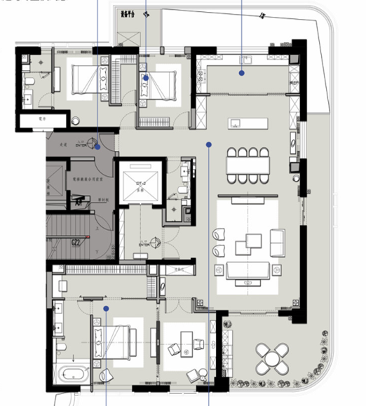 而巫家坝片区豪宅项目中国铁建·西派国樾在售的大平层房源则是2梯2户的设计。
