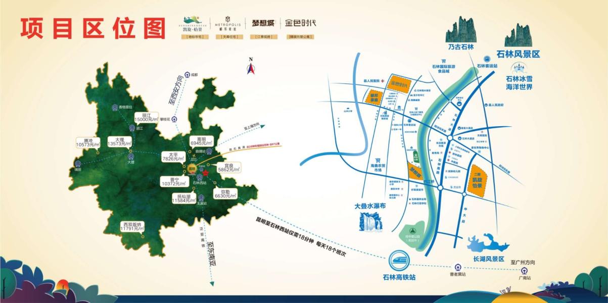 其次,石林是昆明直辖郊县,咱可以想象一下自己省份的任何一个县城,城市面积能有多大?反正在石林打车,半小时不到就能从南到北跑完全城,石林的楼盘不存在市中心楼盘、郊区盘的说法,因为基本都在县城里边,都享受一样的城市资源配套:一样的医疗机构、娱乐商业中心、学校、公园等!