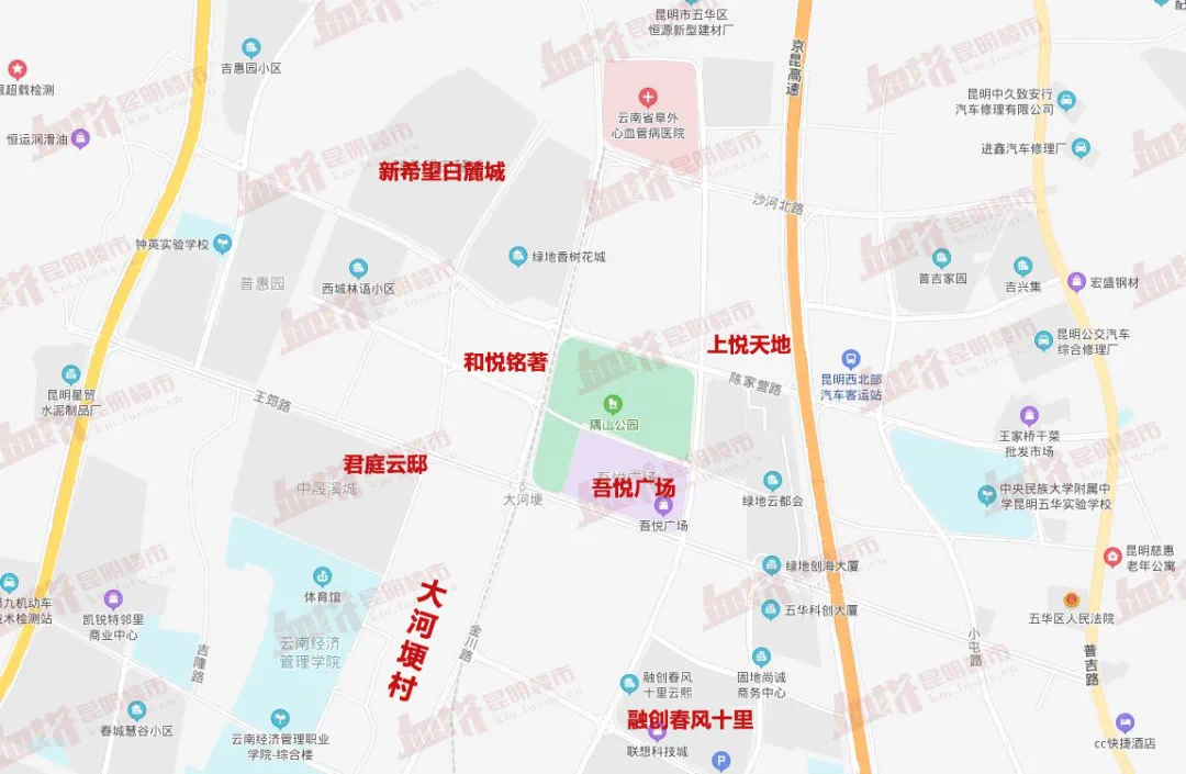 随着昆明城市的不断扩张发展,原来的西北城郊成为了西北新城,开发一片红火;而大河埂村所在位置正是目前西北新城开发的热点板块;大型房企项目、各大商业、医疗等都分布在此。