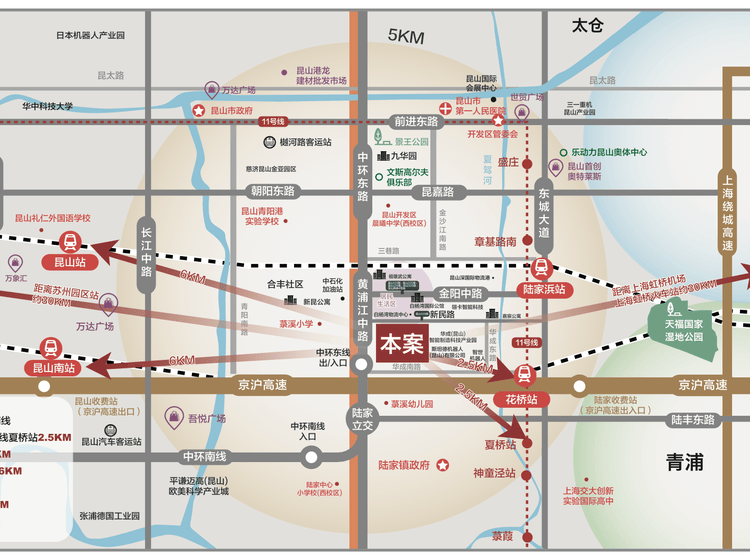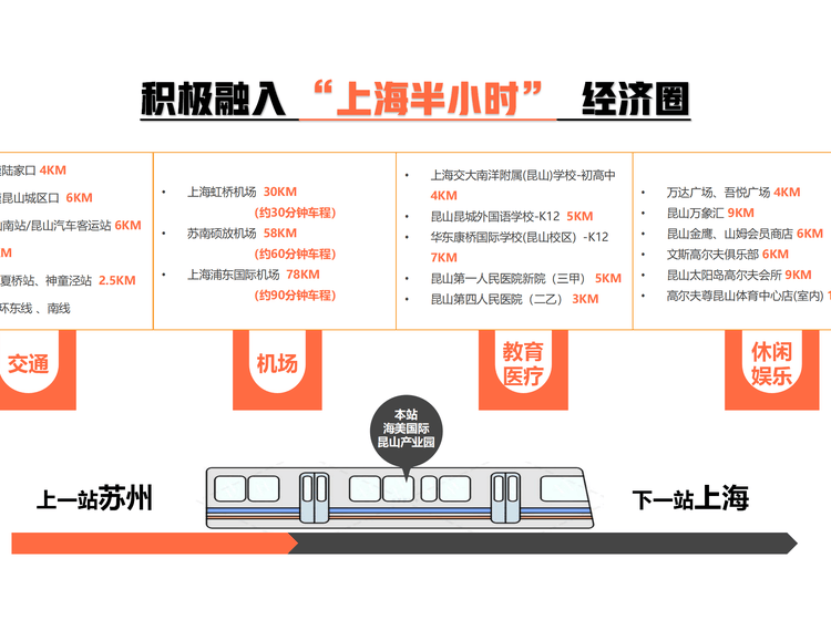 紧邻京沪高速,距上海虹桥机场30分钟,苏州园区30分钟,青浦、嘉定40分钟;