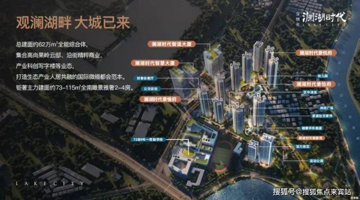 澜湖时代,由深物业集团开发,总占地面积约 6.8万㎡,总建筑面积约 62万㎡,计容建筑面积约 43万㎡,共分 3个地块开发,将建成集产业生产研发、住宅、商业街区于一体的综合体,是龙华北片区新的大型标杆项目