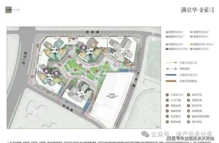 本次推售的是满京华金硕悦府,共由5栋32-48层高的住宅组成,其中1栋1/2单元住宅48F,2栋1单元住宅32F,2栋2单元住宅47F,3栋住宅48F,4栋是1所幼儿园,还配建有社区菜市场,总规划1186户,其中2栋1单元2梯6户,1栋1单元楼王3梯5户,其它栋数全部3梯6户设计。