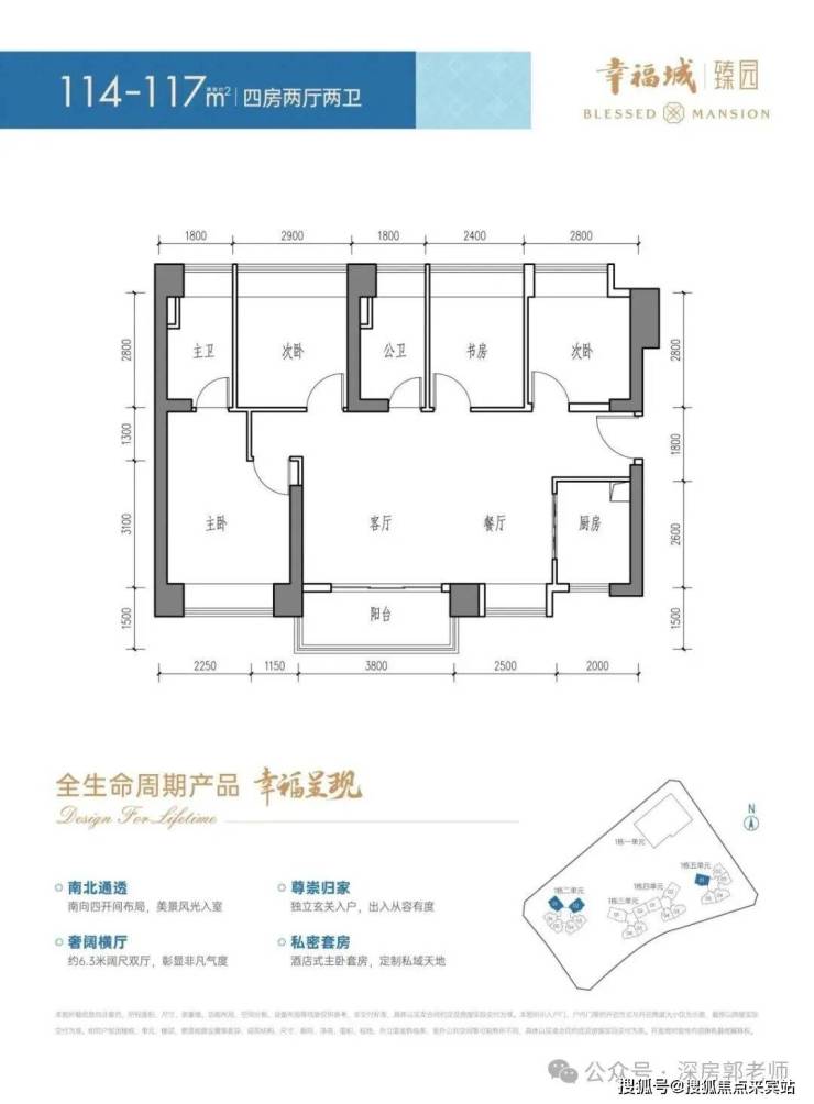 二单元:56F 4梯6户 96-117㎡3-4房;