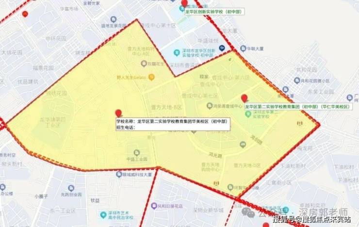 依据2024年龙华区教育局的学区划分方案,小学学区涵盖龙华第二实验学校华美校区、龙华区新华中学教育集团小学部;初中学区为龙华第二实验华美校区。