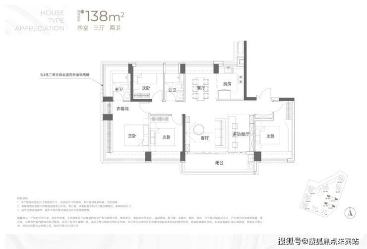 建面约138㎡4房2卫