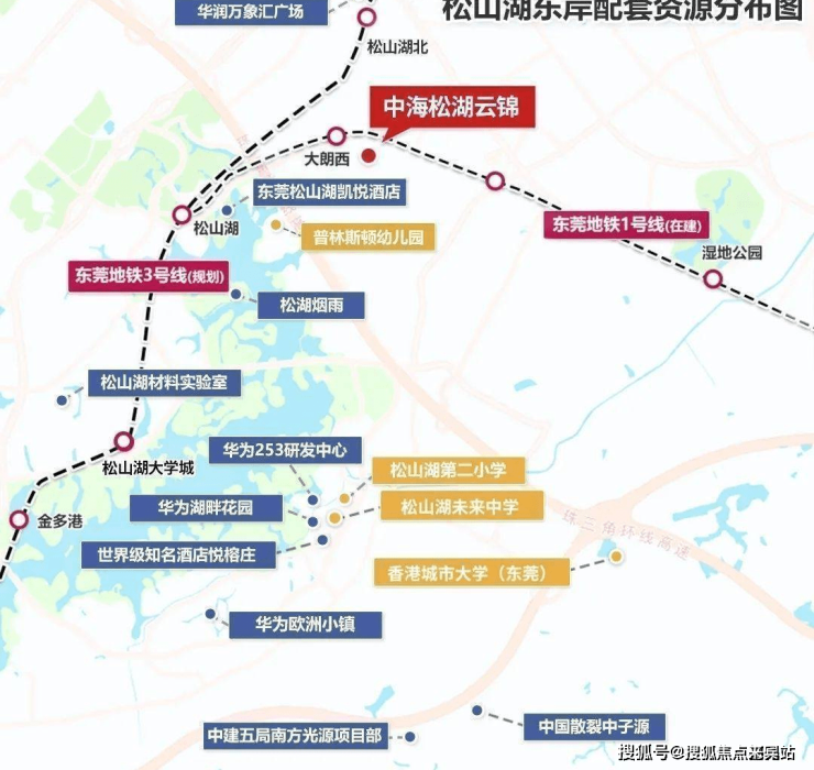 中海松湖云锦项目距离松山湖核心景观——松湖烟雨仅约1.5公里,还有松湖花海、桃源公园、梦幻百花洲等著名生态景观。邻近大朗西站,双轨交汇便捷交通畅达湾区;松山湖未来学校等规划在建,市一级松山湖实验小学、松山湖中心小学等全龄段精英教育环伺,教育文化气息浓厚。