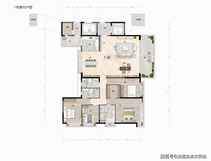 约143㎡四房两厅三卫:豪华双套房,阔绰四房