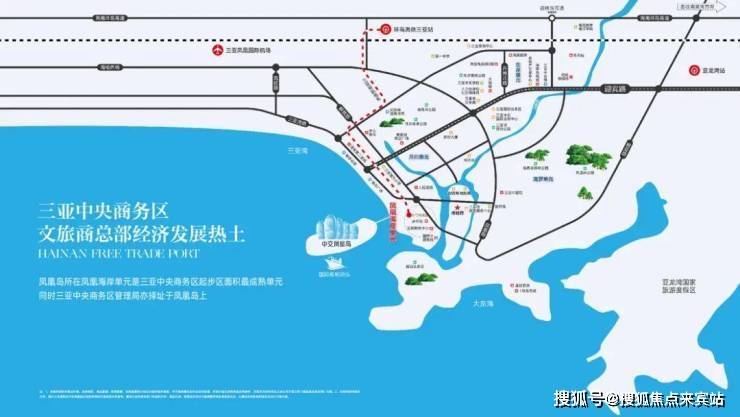 中交·凤凰岛距离三亚凤凰国际机场仅约14公里,驱车前往三亚环岛高铁站点也仅需7.7公里,交通十分便捷。此外,项目毗邻著名的三亚湾椰梦长廊,与大东海、南山海上观音、西岛、鹿回头风景区等知名景区隔海相望,为游客提供了丰富的旅游资源和休闲选择。