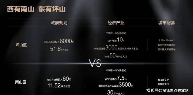 51.6平方公里国家级高新产业园,4.5倍于南山科技园,四块国家级金字招牌,未来35万高端人才助力坪山房价腾飞,周边分布有慧聪项目,未来将项目打造产业互联网生态圈,影响30000人,年产值逾百亿。