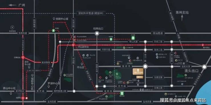 目前开通的深圳东部快线地铁14号线,坪山终点只距离项目3公里。