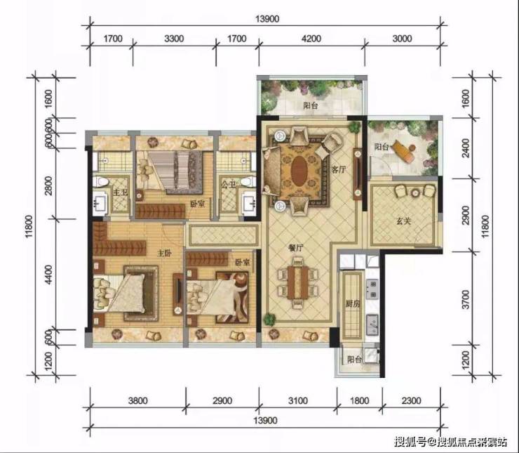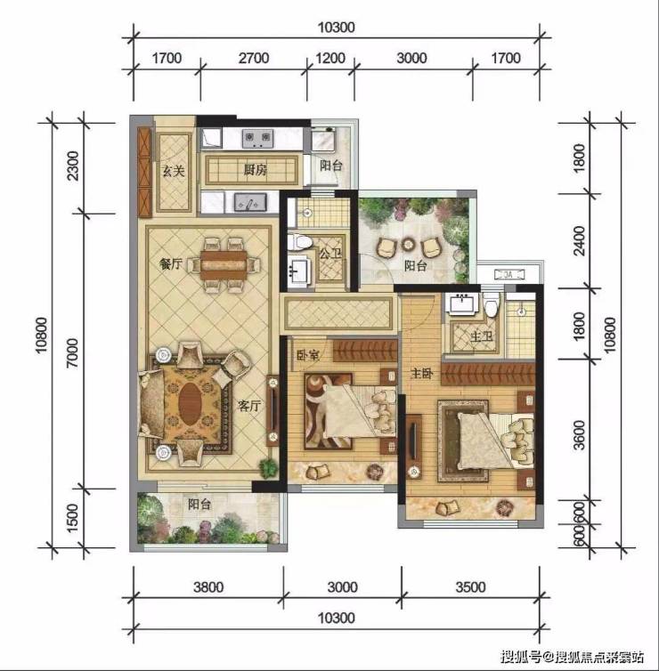 户型赏析:三阳台设计,南向客厅阳台,阔绰主卧,配备专属卫生间,动静分区,精致二房,超高使用空间。